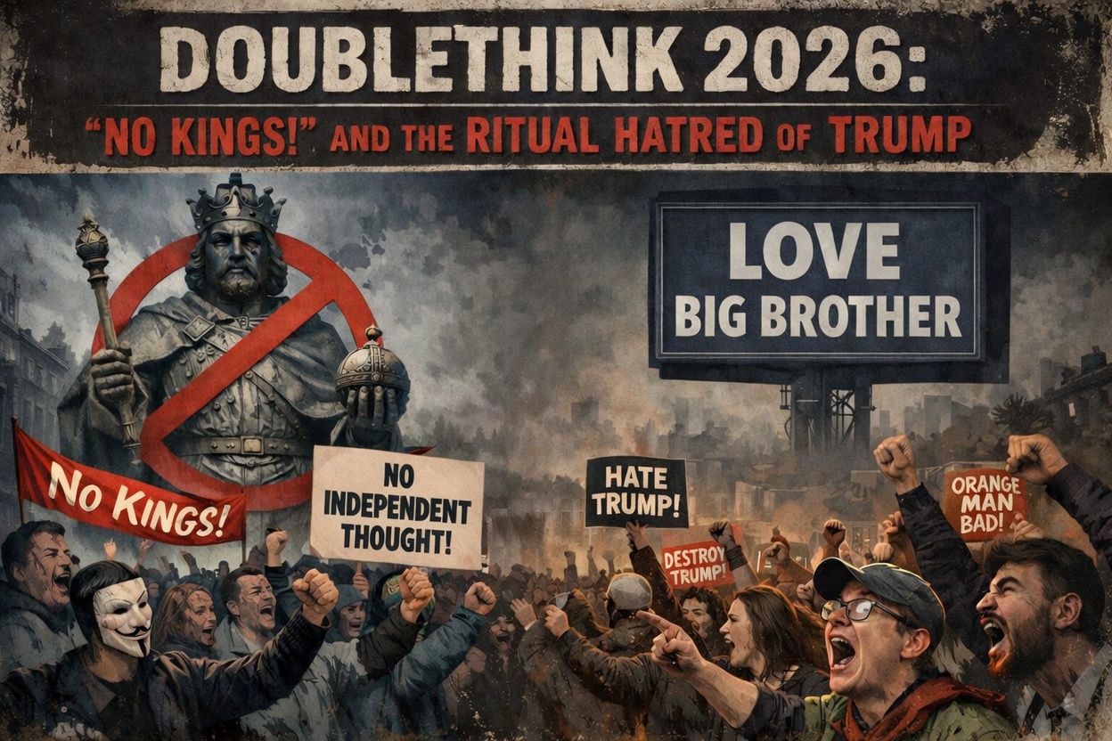 “No Kings” is the ritual in today’s America. Donald Trump is their Emmanuel Goldstein.