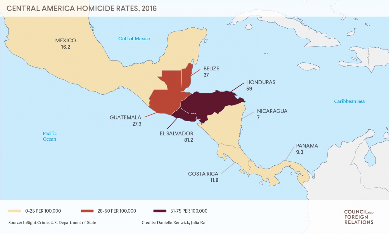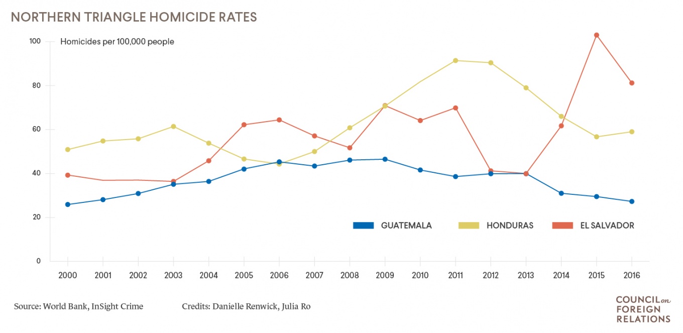 Note: I benefitted from Rocio Cara Labrador and Danielle Renwick’s “Central America’s Violent Northern Triangle,” published in Foreign Affairs on June 26, 2018. The charts used above are from their work.