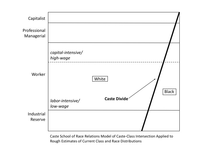 Because the system of racial caste cuts across class, class locations are internally racially stratified. This has the consequence of whites and blacks occupying the same class position yet moving in different cultural-ideological worlds, living out unequal political-legal and socioeconomic lives, with blacks suffering in racially subordinated positions and whites enjoying relatively higher socioeconomic fortunes.