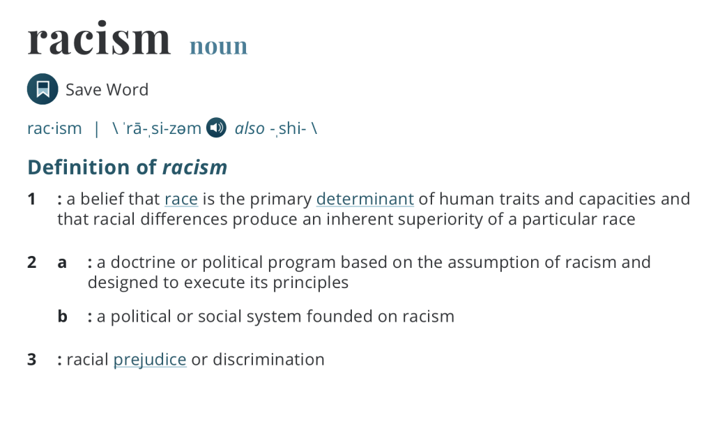Merriam-Webster defines racism as “a belief that race is the primary determinant of human traits and capacities and that racial differences produce an inherent superiority of a particular race.” That is the definition of racism. However, because that definition did not allow Mitchum to leverage the notion of “systemic racism” to sustain a charge of racism against her opponents (vague definitions are better to argue with from an ideological standpoint), she wrote to Merriam-Webster and demanded her definition be substituted.