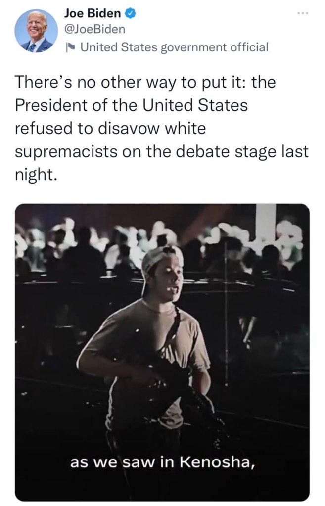 This tweet not only defames Rittenhouse, but mislead the public about President Donald Trump’s explicit and repeated disavowals of white supremacy.