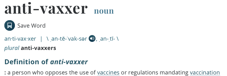 As for the irresponsible, I am hoping the people around me soon understand what I’ve understood for a very long time, which is well stated in the tweet shared above. I hope they lose the ideology and get back to basic scientific reasoning. I have to hope because I clearly have no power to persuade. But don’t worry over my pessimism. Resistance won’t stop me from trying. So might I suggest this redefinition of the term anti-vaccine: