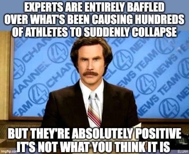 Though they deny it, elites are aware that athletes (and others) across the West are collapsing in numbers much greater than in previous years. Sudden death has drastically increased since the rollout of the mRNA gene therapy falsely marketed as a vaccine against COVID-19, a weaponized strained of coronavirus manufactured in a laboratory in Wuhan China using US tax dollars to fund the work.