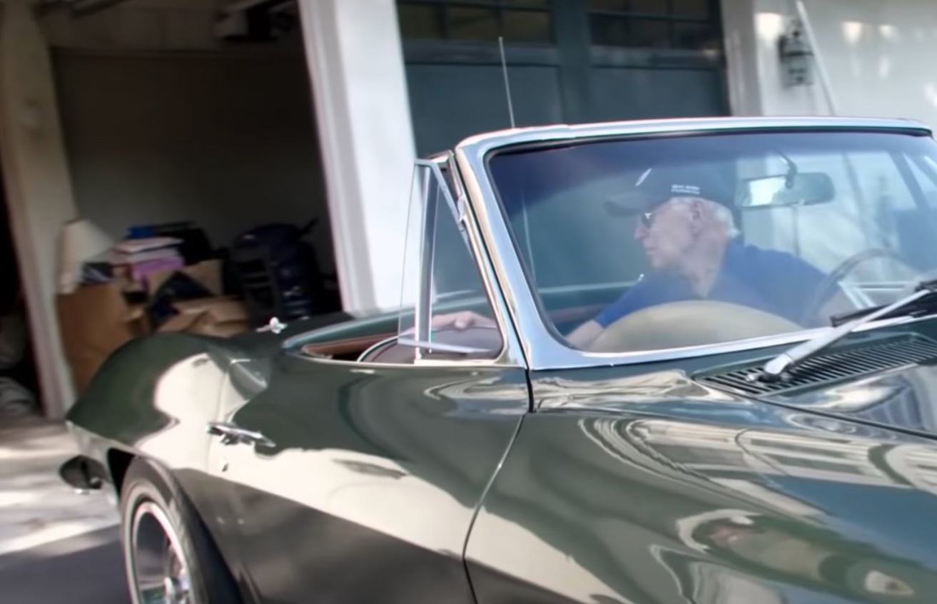 Biden backing his Corvette into the garage of his Wilmington residence with boxes of classified documents clearly visible.