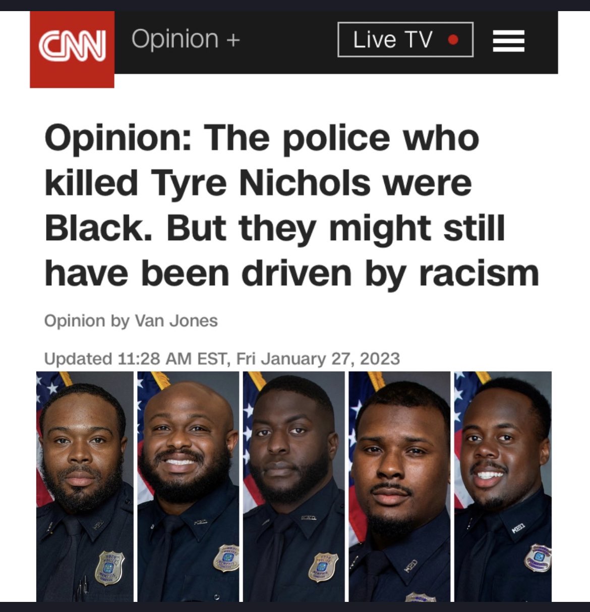 As readers of Freedom and Reason are well aware, Balto is hardly alone in the system that manufactures historical accounts entrenching the mythology of the racist criminal justice systems in the popular mind. The propagandists of the corporate state are no less involved. Here is a tweet by CNN political commentator, former congressman for New York’s 17th district, and current member of the US Commission on Civil Rights Mondaire Jones desperately trying to keep alive the false narrative that racism lies beneath these events—even when the police officers are all black.