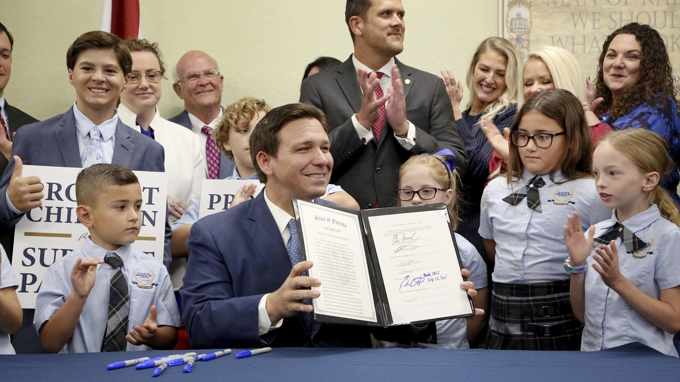 Gov. Ron DeSantis displays the signed Parental Rights in Education, March 28, 2022