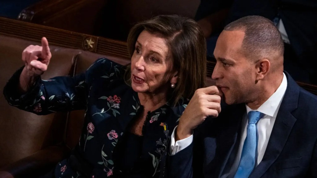 Former House Speaker Nancy Pelosi and House Minority Leader Hakeem Jeffries