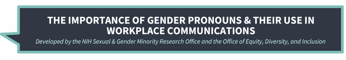 “One of the simplest ways to promote the appropriate and correct use of pronouns is by being open about your own in everyday communications (introductions, PPT slides, etc). Disclosing personal pronouns at the start of a conversation or adding them to one’s email signature block may make others more comfortable to disclose their own and prevent misgendering in the workplace.”