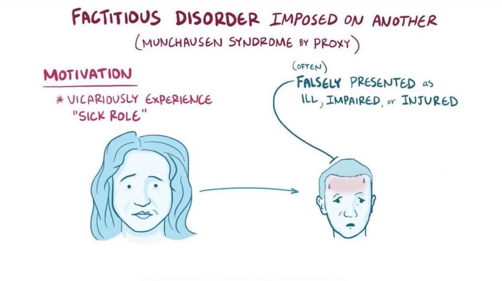 Munchausen syndrome is distinct from other similar presenting mental health conditions in that, with Munchausen, the afflicted subject intentionally feigns illness or injury for personal gain, such as attention or sympathy, rather than experiencing genuine physical or psychological symptoms. This difference means that the target of Munchausen syndrome may be another person. In other words, the person suffering from this disorder project her desire for attention by feigning illness onto other people, seeing them as suffering from a medical condition and obtaining attention by being a dutiful and compassionate caregiver.