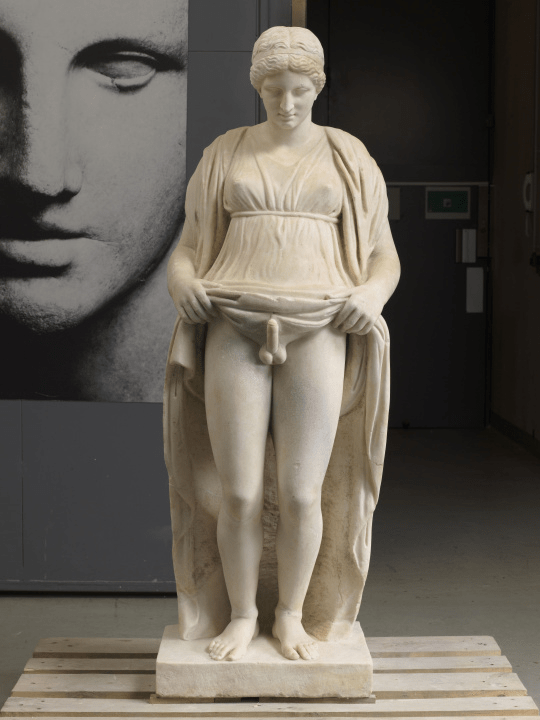 In Greek mythology, Hermaphroditus, a child of Aphrodite and Hermes, and a member of the Erotes, a species of winged entities associated with fornication, was, at the request of a prominent Naiad (nymph), fused with her body to produce a deity that was both genders/sexes simultaneously. It’s no surprise, then, that gender ideologues have taken to sharing images of representations of Hermaphroditus to claim that such beings existed in history.