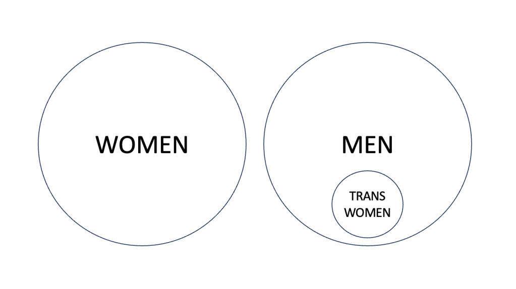A Facebook friend noted yesterday morning that, if the phrase were true, why must it be qualified? It’s like saying red is blue and that they are the same. “If two things are indeed the same,” he asked rhetorically, “shouldn’t both be called the same thing without qualification?” Exactly. That’s why the woke propagandist created the term “cis gender”: the trans woman becomes a subset of women, as do cis women, whose essentialism is denied and therefore also their sex-based rights. It’s why trans activists are so triggered by adjectives such as “biological” and “real.”