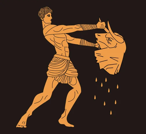 The Minotaur was confined to the Labyrinth, a maze-like structure designed by Daedalus (helped by his apprentice son Icarus), located in the palace of King Minos. The Athenians, as part of the tribute they were required to pay to Crete, sent young men and women to be sacrificed to the Minotaur. Theseus, the Athenian hero, eventually slew the Minotaur with the help of Ariadne, King Minos’ daughter, who provided him with a thread to navigate the Labyrinth.