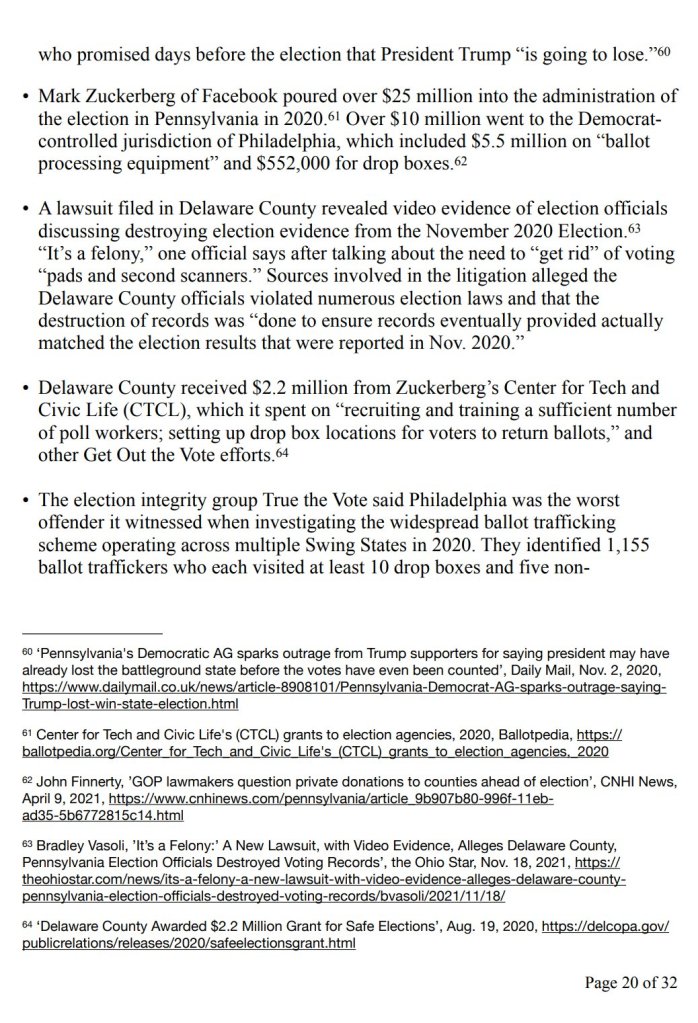 • Mark Zuckerberg of Facebook poured over $25 million into the administration of the election in Pennsylvania in 2020. Over $10 million went to the Democrat-controlled jurisdiction of Philadelphia, which included $5.5 million on “ballot processing equipment” and $552,000 for drop boxes.