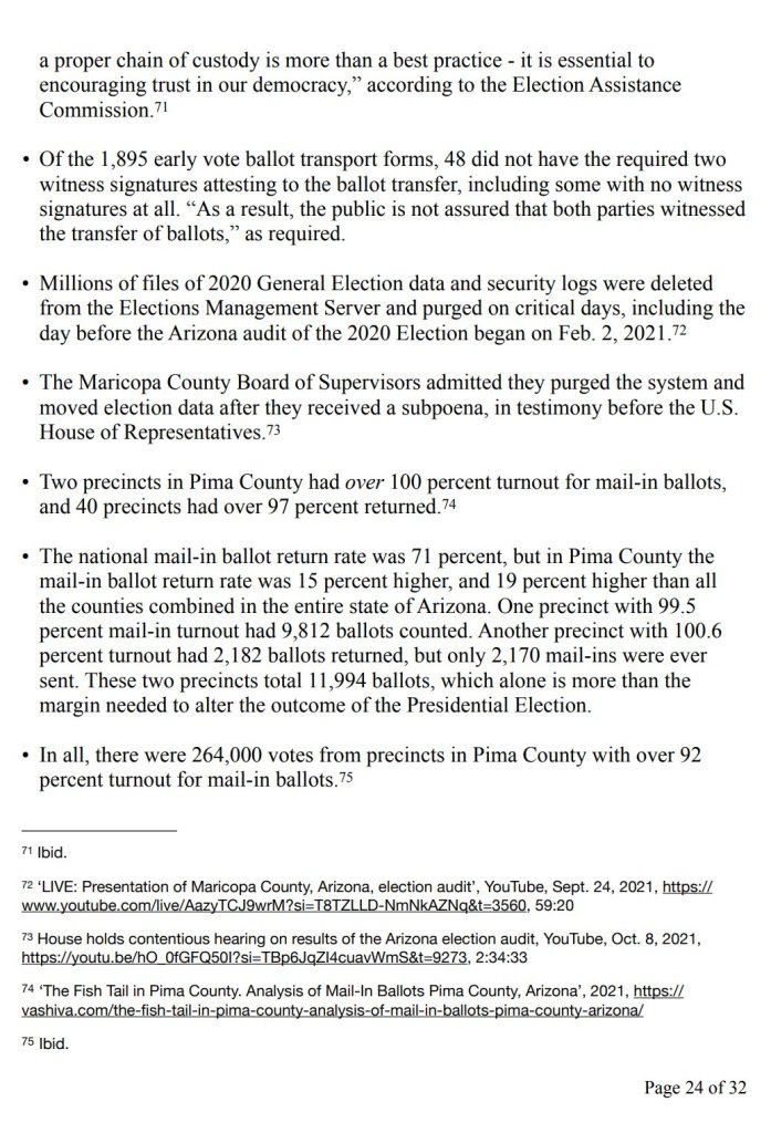 • Maricopa County has no documented chain of custody for 740,000 ballots from the 2020 Election.