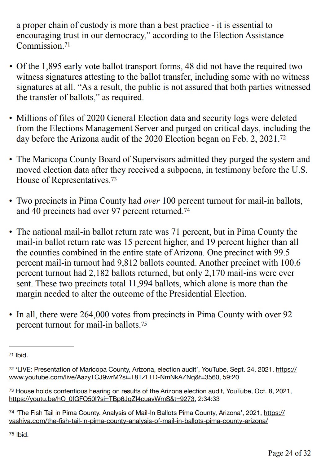 • Maricopa County has no documented chain of custody for 740,000 ballots from the 2020 Election.