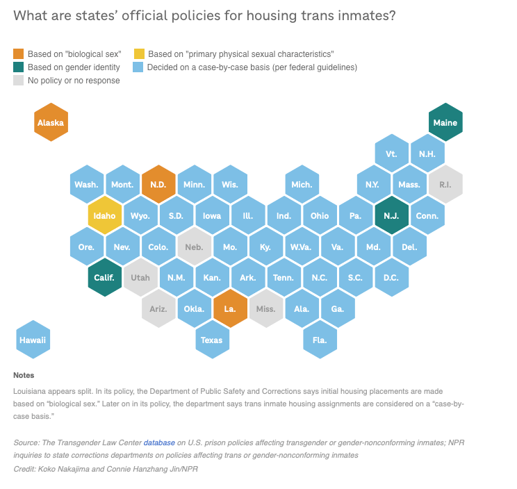 If trans men are men, should they go to men’s prisons? Such a practice poses serious risks to trans men given that they are females. Prison would be particularly unsafe for them. But the reverse of this, i.e., trans women in women’s prisons, poses the same problem. If trans men are not safe around male inmates because they are female, then female inmates are not safe around trans women given that trans women are male.