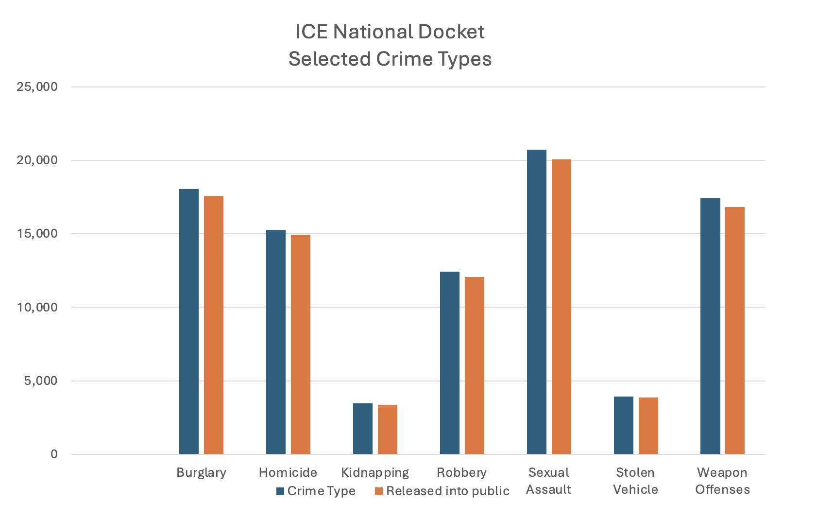 House Representative Tony Gonzales of Texas received a letter from the US Department of Homeland Security (DHS) US Immigration and Customs Enforcement division (ICE) detailing the number of noncitizens on ICE’s docket either convicted or with pending charges. According to the letter: “As of July 1, 2024, there were 662,566 noncitizens with criminal histories on ICE’s national docket. Of those, 435,719 are convicted criminals, and 226,847 have pending criminal charges.” Breaking these down by selected serious crimes, either convicted or with pending charges, with the number released into the general population cited, we find the following very troubling reality: