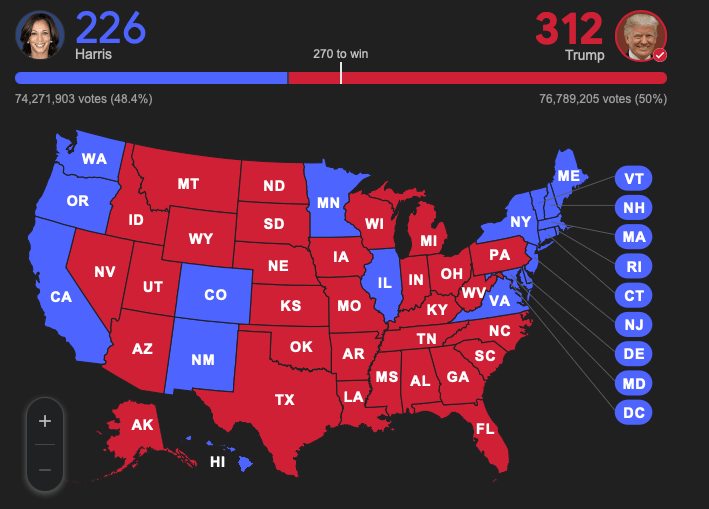 Trump presently has 76,957,993 votes recorded. His vote count will almost certainly exceed 77 million, which would be not only the largest number of votes ever won by a Republican, but exceed any reasonable vote total attributed to Joe Biden in the 2020 election. By how much would require an audit, but 81.3 million is a rather incredible number. (Harris’ 74,470,093 figure is also like inflated, again because her votes were driven up in those states that do not require voter ID, where immigrants are groomed to vote in elections.)