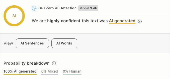 100 percent AI generated—according to GPTZero.