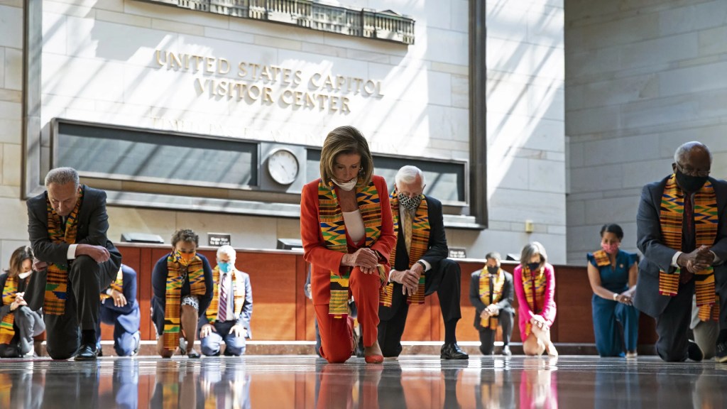 There’s a lot going on here but it operationally comes back to loathing of whites, whether they’re the majority or a minority. A great many whites argue themselves for anti-white hostility—we might deem these folks self-loathing. This was expressed during the BLM riots, when whites washed the feet of the black activists setting businesses on fire out of white guilt for being “oppressors.” Remember the Democratic congressmen, including House Speaker Nancy Pelosi and Senate Minority Leader Chuck Schumer, wore kente cloth while taking a knee for George Floyd?