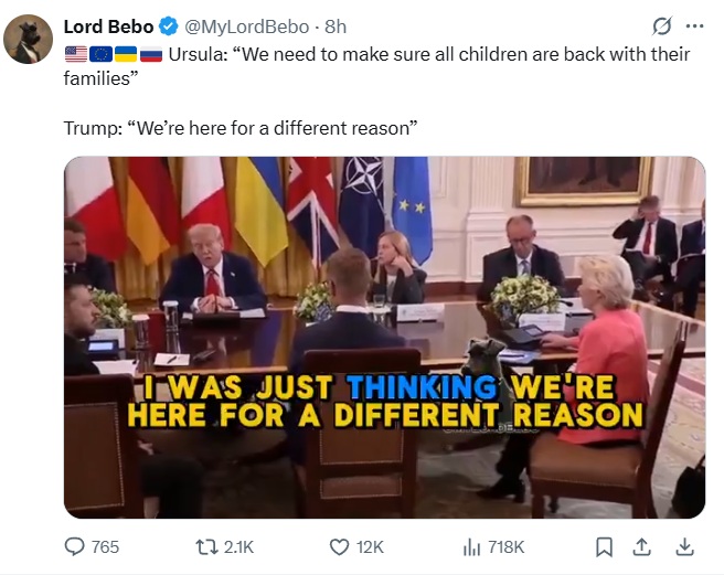There’s a very dishonest meme making the rounds on social media. It falsely suggests that President Trump told Ursula von der Leyen, President of the European Commission, that the thousands of missing Ukrainian children had nothing to do with the meeting’s business.