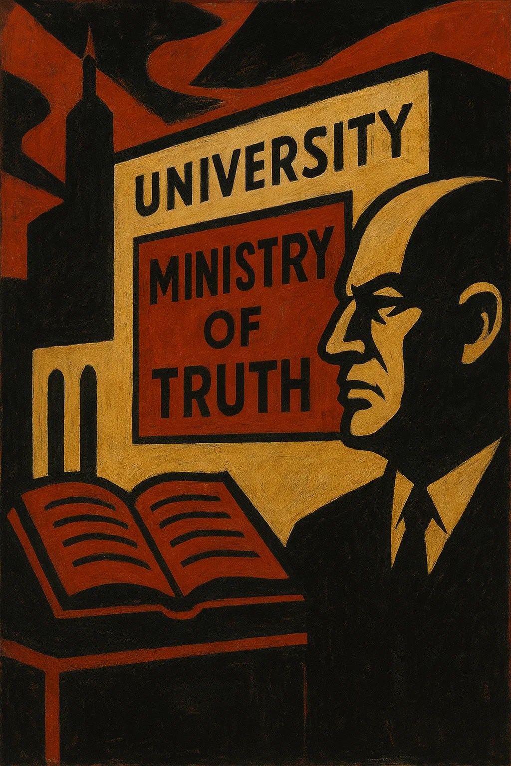 The result is the emergence of a de facto “Ministry of Truth,” operating much like the one George Orwell described in Nineteen Eighty-Four: by (consciously and unconsciously) keeping general knowledge in line with political doctrine, the knowledge-industrial complex controls not only what is taught, but what can be thought.