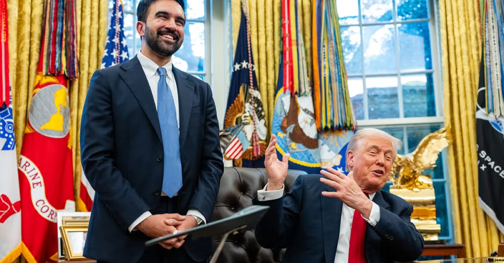 The media are reporting that President Donald Trump’s friendly Oval Office meeting with the soon-to-be mayor of America’s largest city, Zohran Mamdani, on November 21 roiled parts of the MAGA base. The New York Times was somewhat less optimistic in its assessment. “There was one moment when Zohran Mamdani seemed like he might have bit off a little more than he could chew by making his pilgrimage to the lion’s den that is President Trump’s blinged-out Oval Office,” Shawn McCreesh writes. “The 34-year-old mayor-elect of New York was pressed by a reporter if he thought his host, who was sitting about four inches away, was really ‘a fascist.’ How terribly awkward.” Indeed. “But before Mamdani could get out an answer,” McCreesh continues, “Trump jumped in to throw him a lifeline. ‘That’s OK, you could just say, Yes,’ Trump said, looking highly amused by the whole thing. He waved his hand, as if being called the worst term in the political dictionary was no big deal. ‘OK, all right,’ Mamdani said with a smile.”