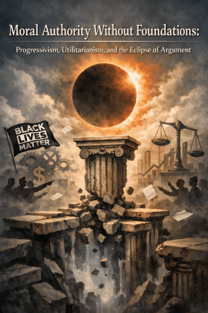 Progressive moral discourse (such as it is) breaks with the American tradition. Its authority does not rest on fixed moral precepts or universal duties, but on outcomes, e.g., the reduction of harm to designated vulnerable groups, selectively chosen to advance ideological and political goals. Again, this is a form of utilitarianism, but one filtered through sociology (yes, my discipline—and not just in its warp form—has played a central role in the corruption of moral understanding) rather than philosophy: moral weight is assigned by group status, historical grievance, and measured disparities.