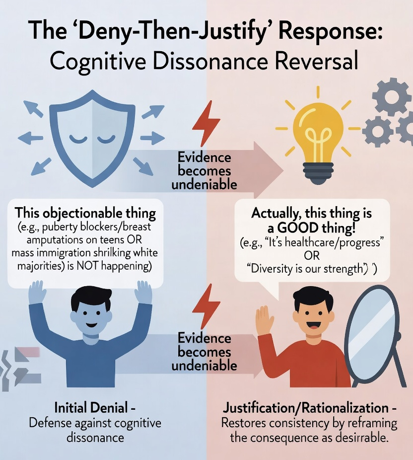 To educate people about this, I have published several articles on the various psychological pressures that compromise rational thought (see When Thinking Becomes Unthinkable: Motivated Reasoning and the Memory Hole; Why People Resist Reason: Understanding Belief, Bias, and Self-Deception; Living with Difficult Truths is Hard; A Recent Revelation from the Epstein Files Confirms One Thing: The Power of Motivated Reasoning). This essay adds to the catalog the “deny-then-justify” response to inconvenient implications of one’s beliefs or commitments.