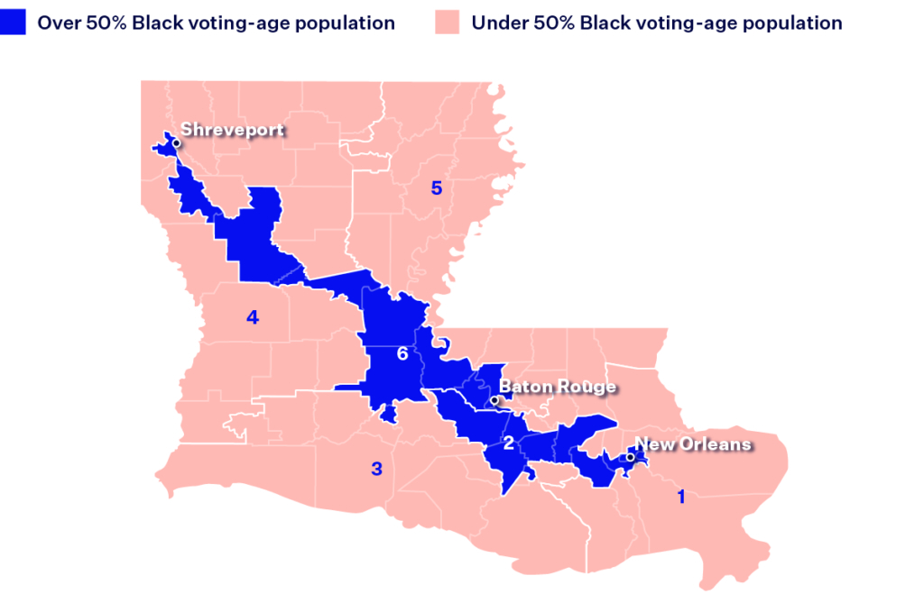 In a 6–3 ruling, the Supreme Court of the United States struck down Louisiana’s congressional map, finding that the state’s creation of a second majority-black district amounted to an unconstitutional racial gerrymander because race was used too heavily in drawing its lines. The case, Louisiana v. Callais, reshaped how the Voting Rights Act of 1965 can be applied, with the Court requiring stronger evidence of intentional discrimination rather than relying primarily on the impact of district maps on minority voters.