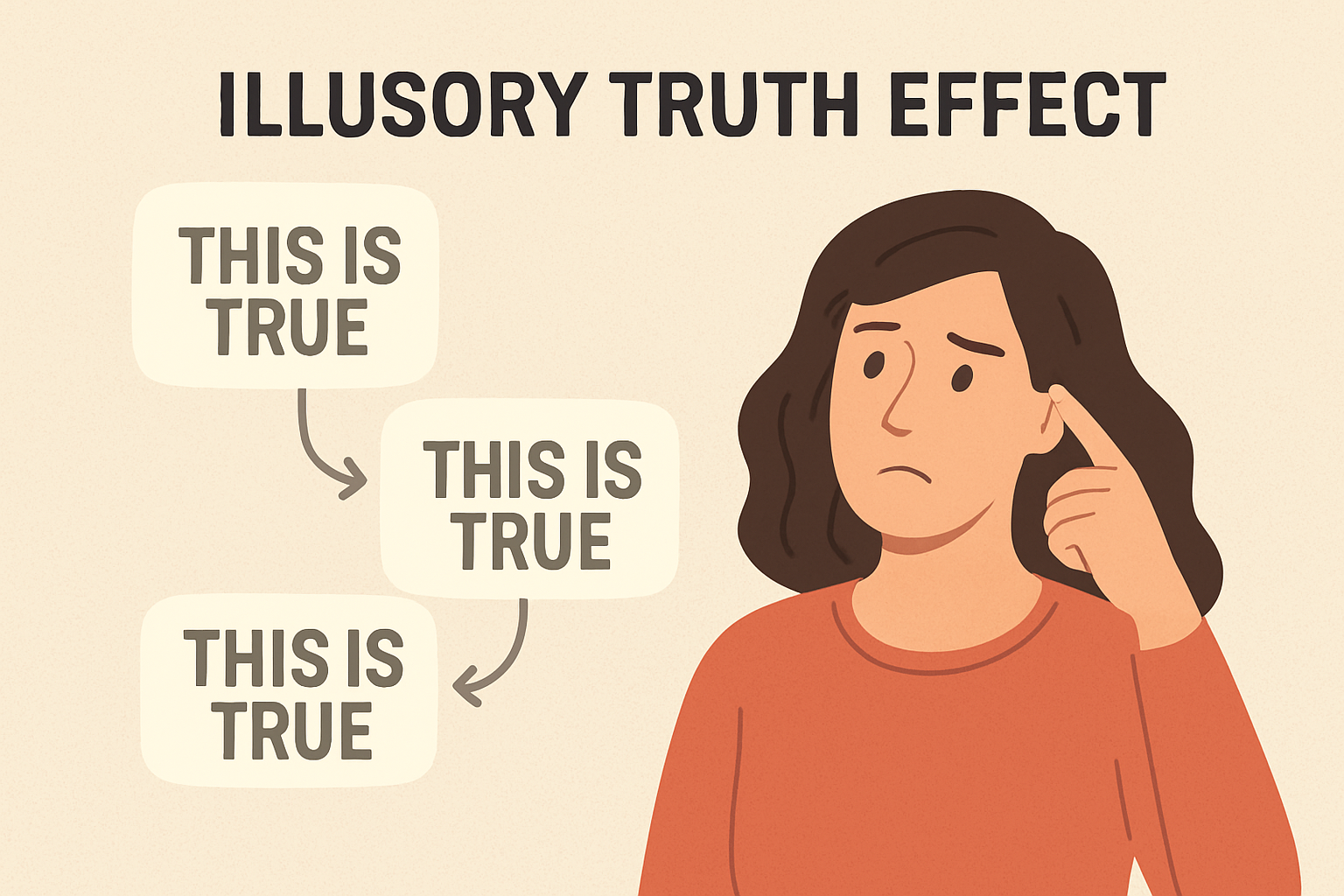 Arielle Scarcella, a lesbian whose Facebook posts deftly deconstruct the claims of the trans lobby, recently reminded me of a cognitive bias I’ve often alluded to but never named explicitly: the illusory truth effect. You’ve likely heard the saying that if a lie is repeated often enough, people will eventually accept it as true. That is precisely the phenomenon. Psychologists—admittedly late to the insight—first identified the effect in the 1970s, and it has since proved remarkably robust. Social science often “discovers” the obvious. The illusory truth effect shapes advertising, political messaging, public discourse, and even personal relationships. The underlying idea was widely recognized long before it acquired the label “big lie.”